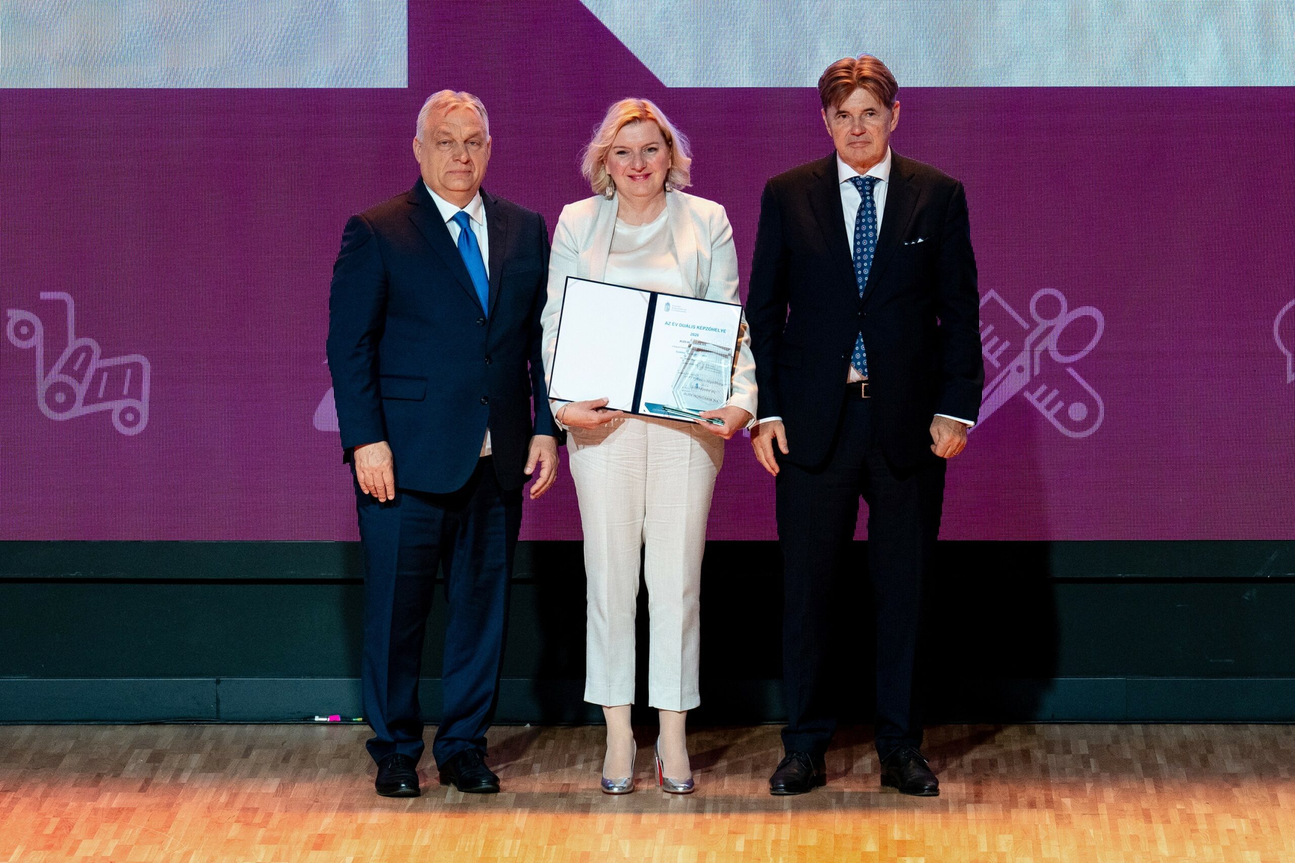 Az Audi Hungaria érdemelte ki a Magyar Kereskedelmi és Iparkamara „Az év duális képzőhelye – 2026” díját nagyvállalati kategóriában. A díjat Németh Kinga, az Audi Hungaria személyügyért és szervezetért felelős igazgatósági tagja vette át Orbán Viktortól, Magyarország miniszterelnökétől a Kamara Szakma Sztár Fesztivál rendezvényének, az országos szakmai versenyek döntőjének megnyitó ünnepségén. A győri nagyvállalat Magyarországon huszonöt éve elsőként kezdte meg és partnereivel azóta is elkötelezetten fejleszti a duális szakképzést. A program mára országos mintává és a járműipari szakképzés egyik meghatározó pillérévé vált.