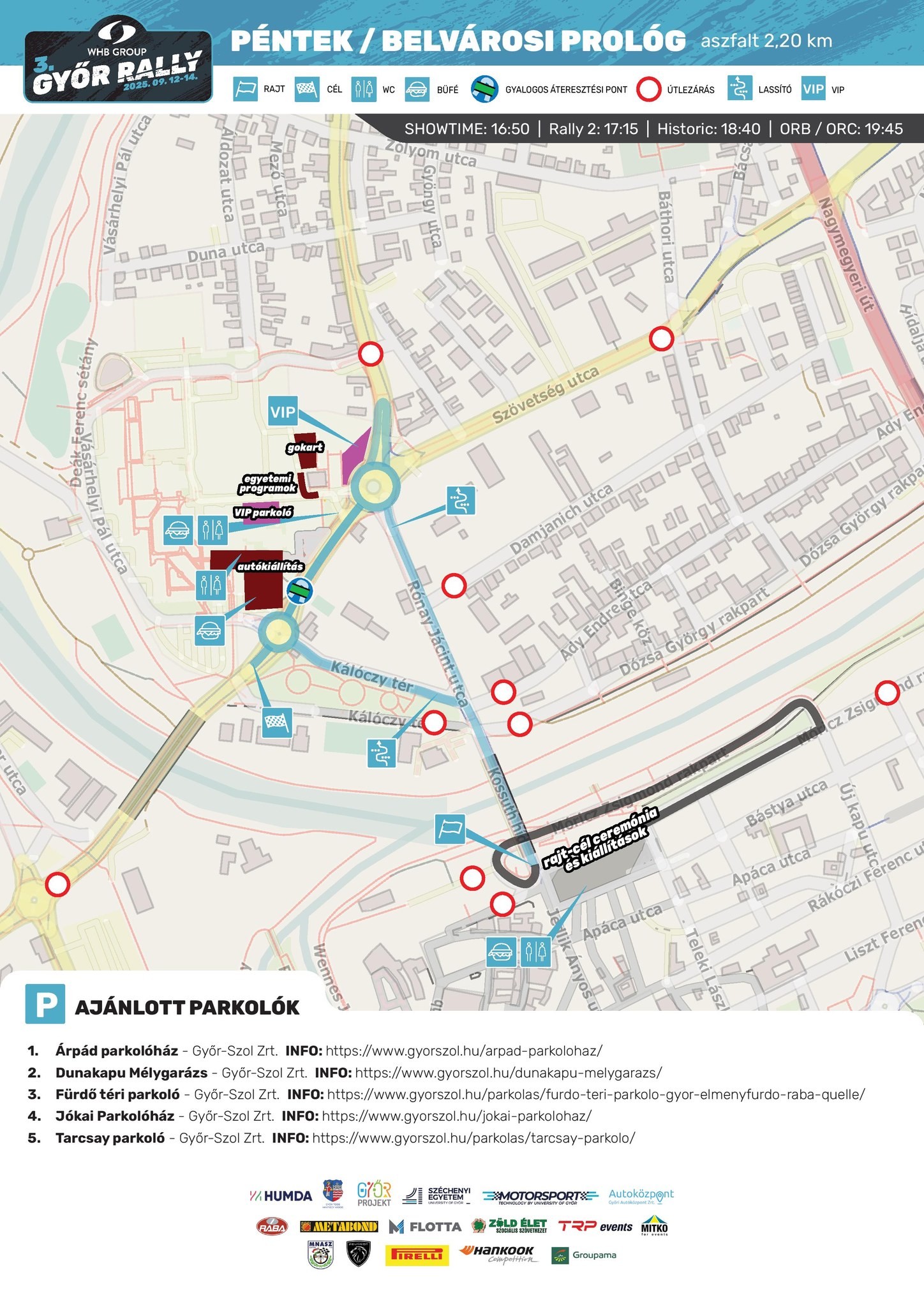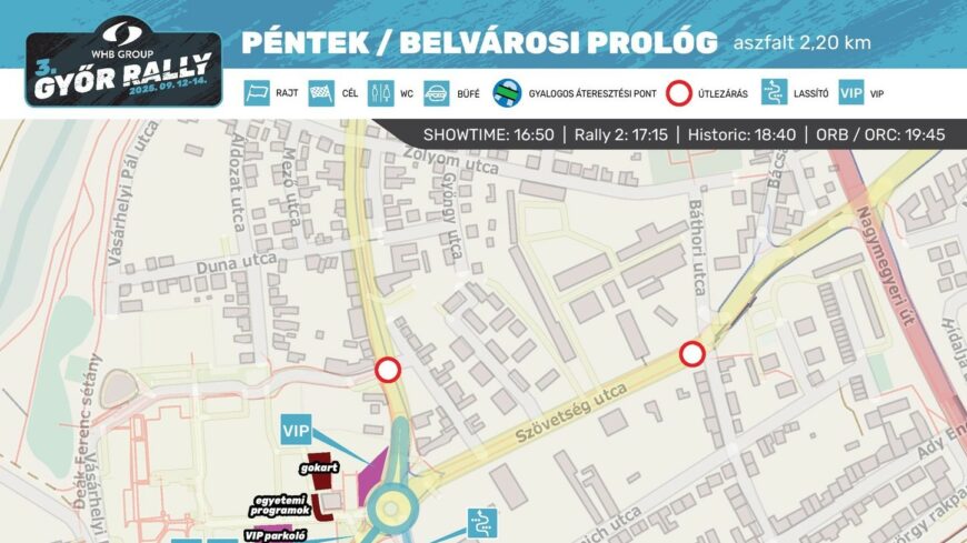 Szeptember 12-én 16:00 és 23:00 között a Belváros és Révfalu több pontján útlezárásokra kell számítani a Győr Rally belvárosi gyorsasági futama miatt.