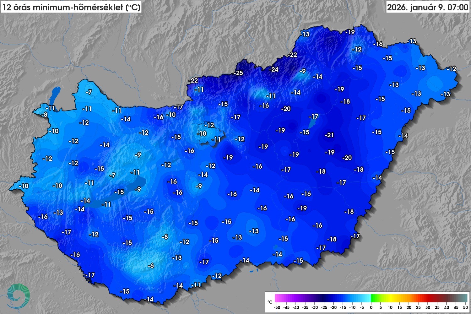 Az előrejelzés szerint péntekre virradóan az ország keleti felén, nagy területen várható mínusz 15 Celsius-fok körüli, illetve az alatti minimum-hőmérséklet, elsősorban az ország középső észak-déli sávjában mínusz 20 fok alatti minimumok is előfordulhatnak.