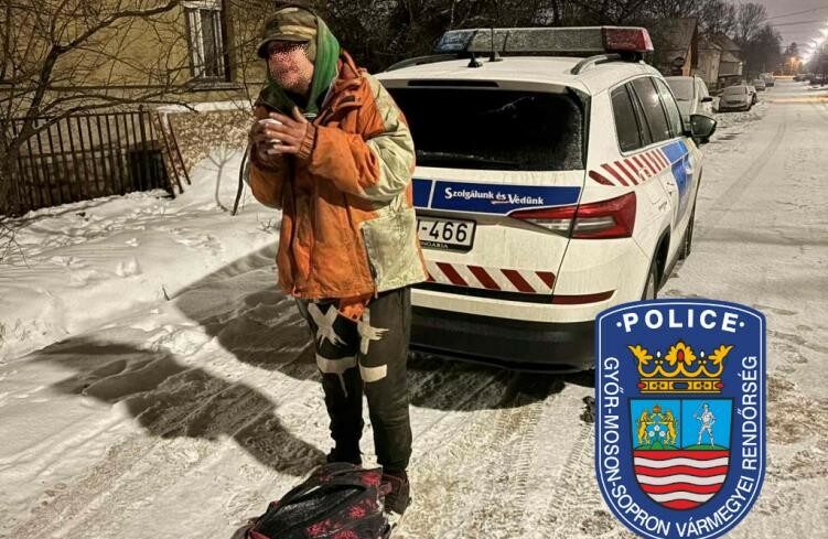Bejelentés érkezett egy győri fiatalembertől, miszerint ismeretlen embert látott az udvarukon. Kollégáink a helyszínen igazoltatták a férfit, aki elmondta, hogy nincs hova mennie. Nem volt megfelelően felöltözve, nagyon fázott, így a rendőrök meleg teát adtak neki és a szolgálati kocsiba ültették a további intézkedésig. A fiatalember hálálkodott a forró italért és a segítségnyújtásért.