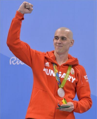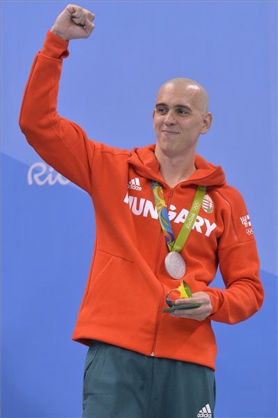 A rajtot viszonylag jól kapta el, negyediknek fordult, majd hatalmas hajrába kezdett, s ugyan látszódott, hogy a győzelemre már nem lehet esélye, de az éremszerzésre igen, végül elképesztő izgalmak közepette második lett. A 30 éves magyar klasszis 51.14 másodperces idővel csapott célba, csakúgy mint a szám háromszoros címvédője, az amerikai Michael Phelps, illetve a világbajnok dél-afrikai Chad Le Clos. A számot a szingapúri Joseph Schooling fölényesen nyerte 50.39 másodperces olimpiai csúccsal.