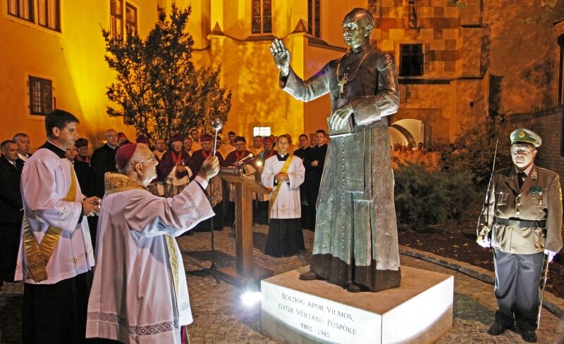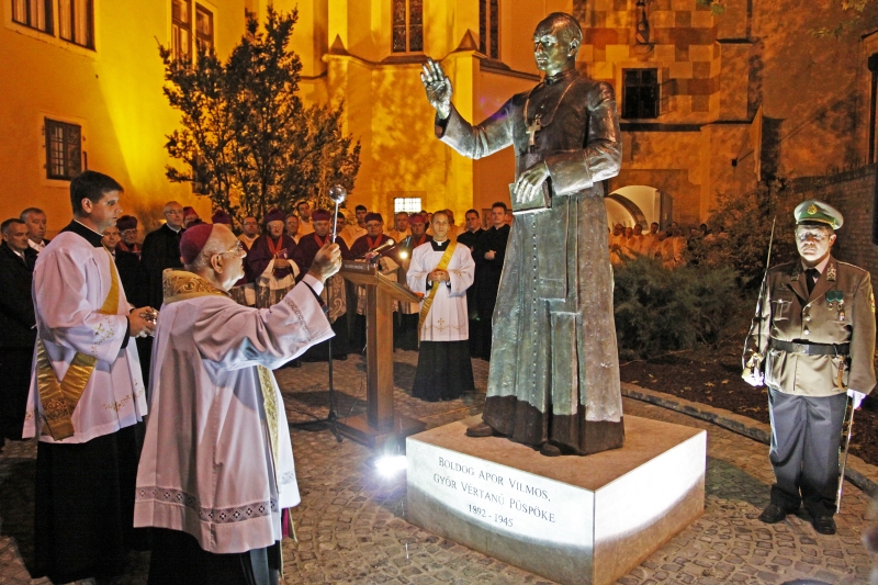 Apor Vilmos boldoggá avatásának 15. évfordulóján emeltek szobrot Győrben. A művet Lebó Ferenc szobrászművész készítette. Az emlékmű a Káptalan dombon a Püspökvár tornya előtt kapott helyet.
