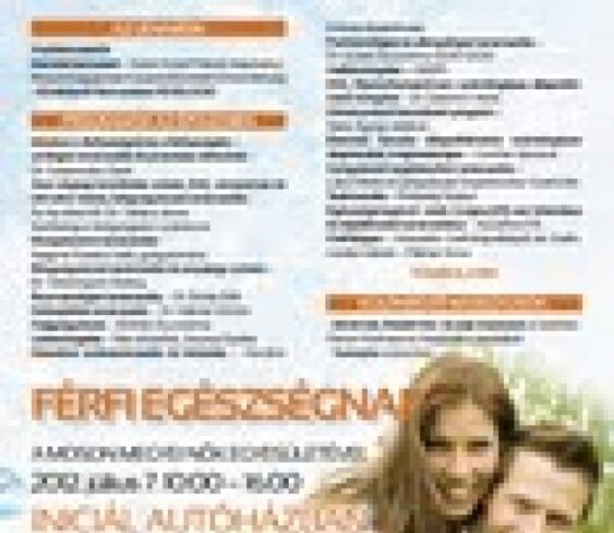 Férfi egészségnapot tartanak a hétvégén Mosonmagyaróváron. A programot a Moson Megyei Nők Egyesülete szervezi, amelyre július 7.-én délelőtt 10 órától, délután 16 óráig várják az érdeklődőket. Az Iniciál Autóház udvarán lesz tűzoltó és mentő bemutató, az épületben pedig egészségügyi szűrővizsgálatokon, tanácsadáson vehetnek részt a látogatók. Emellett egy dohányzásról leszoktató programot, és grafológiai bemutatót is tartanak.