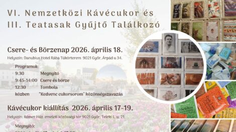 2026. április 17-19 között Győrben kerül megrendezésre a VI. Nemzetközi kávécukor és III.Teatasak gyűjtő találkozó. A rendezvényre számos európai országból regisztráltak gyűjtők, a magyar gyűjtőtársak mellett holland, cseh, horváth, orosz, portugál, olasz, spanyol, ukrán gyűjtőket várunk. A nyilvános szombati cserenapon több ezer különféle kávécukor és teatasak lesz látható.